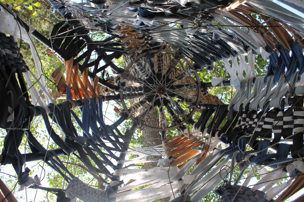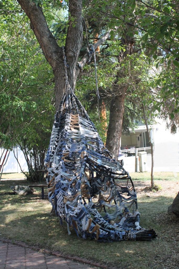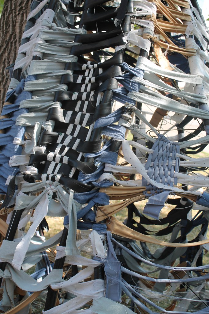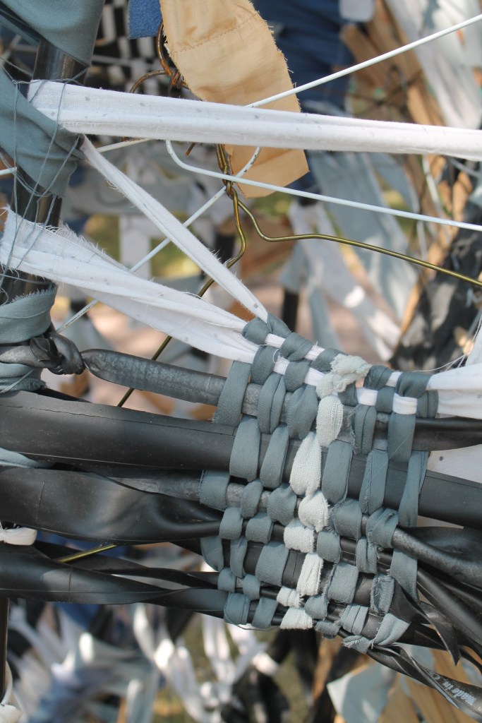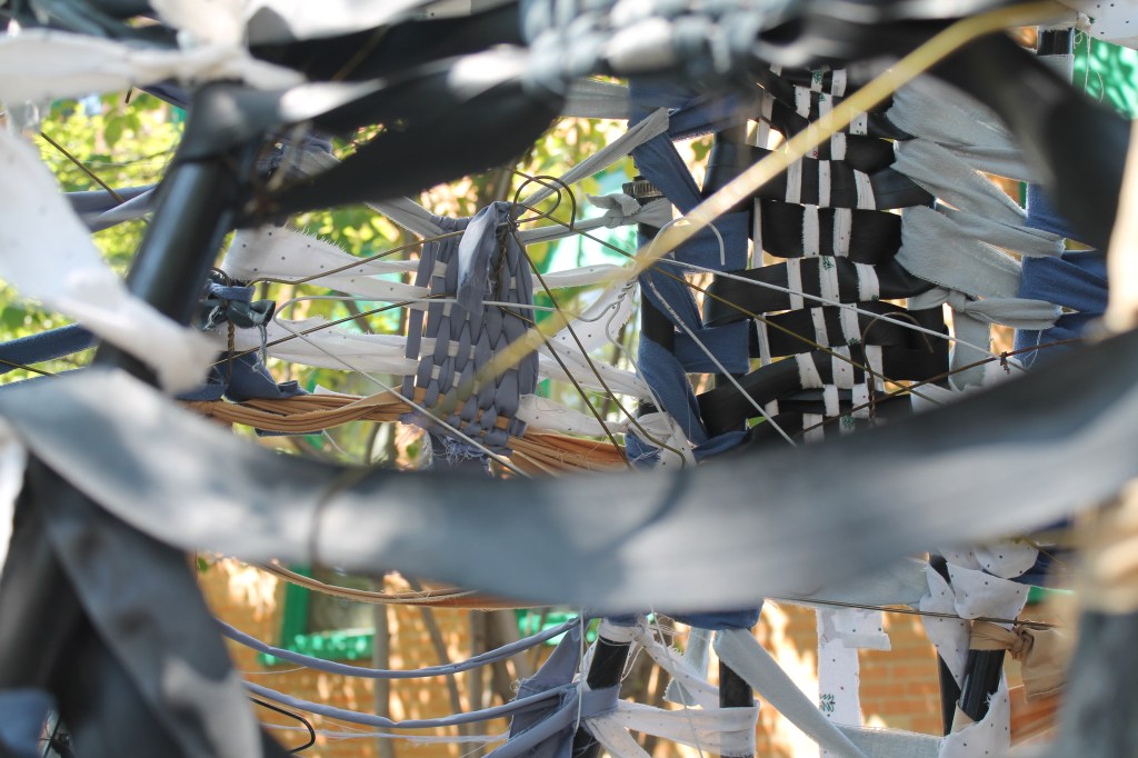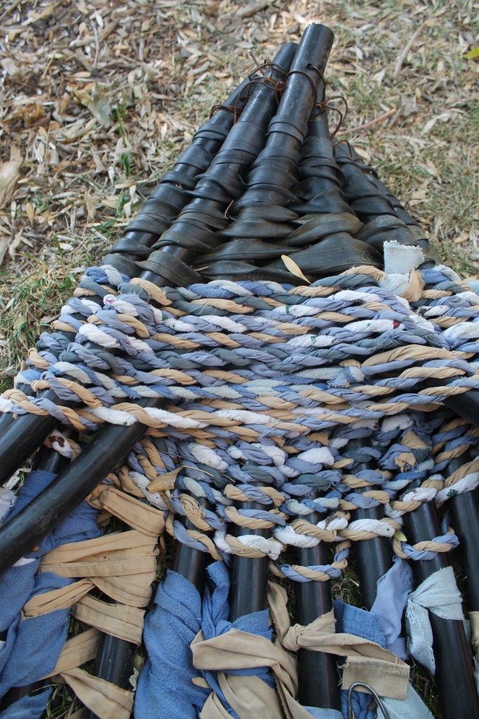 Irrigation pipe, wire coat hangers, spent bicycle inner tubes, bed sheets, wire, bicycle wheel